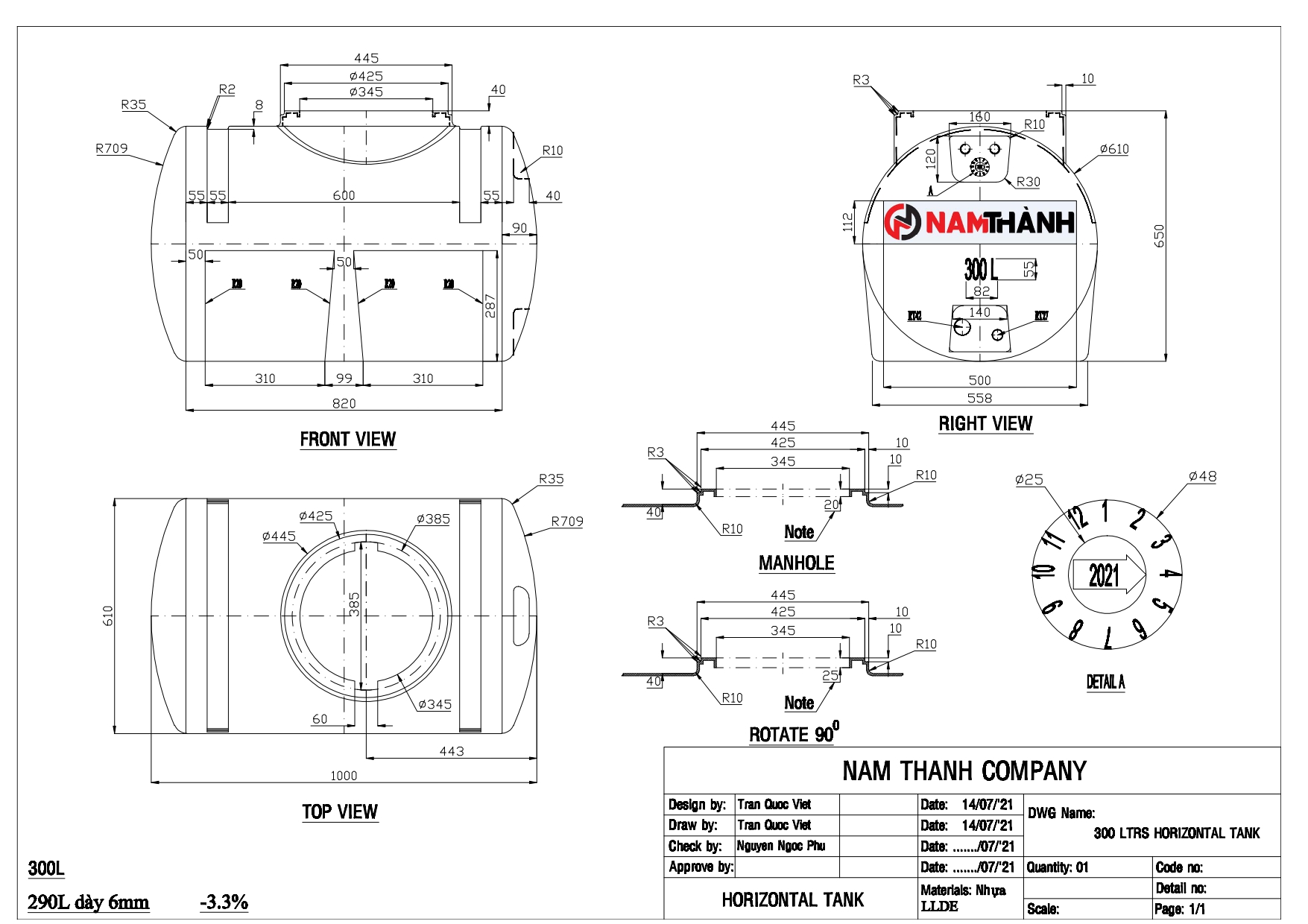 Thông số kỹ thuật của bồn nước nhựa Nam Thành: