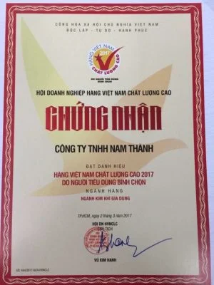 Nam Thành đạt chứng nhận Hàng Việt Nam chất lượng cao