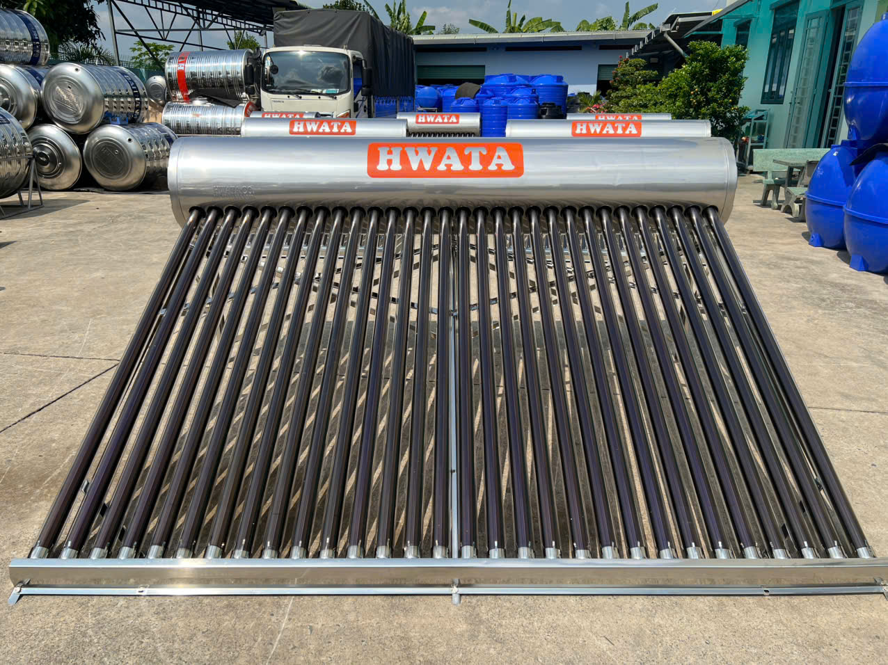 Máy nước nóng năng lượng mặt trời Hwata có nhiều dung tích từ 120 lít đến 300 lít, đáp ứng tốt nhu cầu sử dụng nước nóng của từng hộ gia đình hoặc doanh nghiệp.