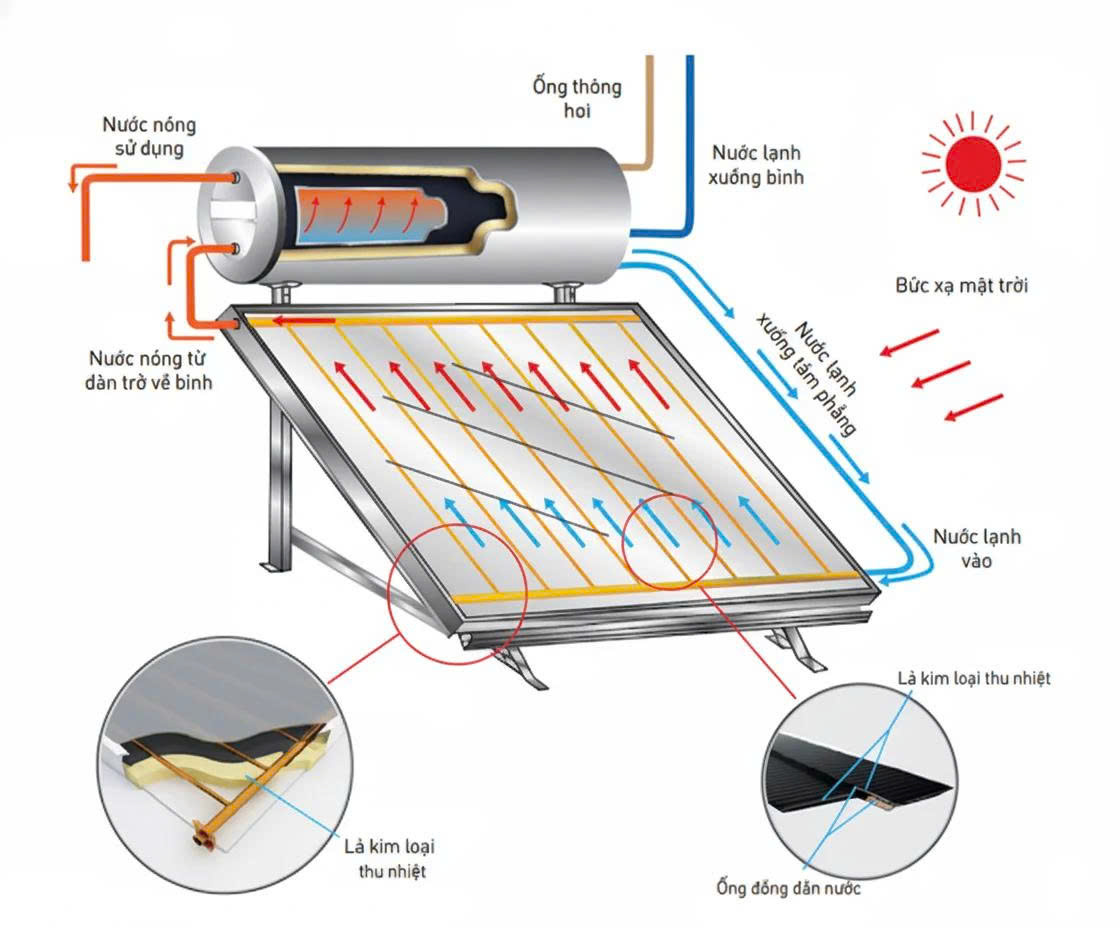 1. Nguyên lý hoạt động của máy tấm phẳng Thái Dương Năng Sơn Hà 150 lít
