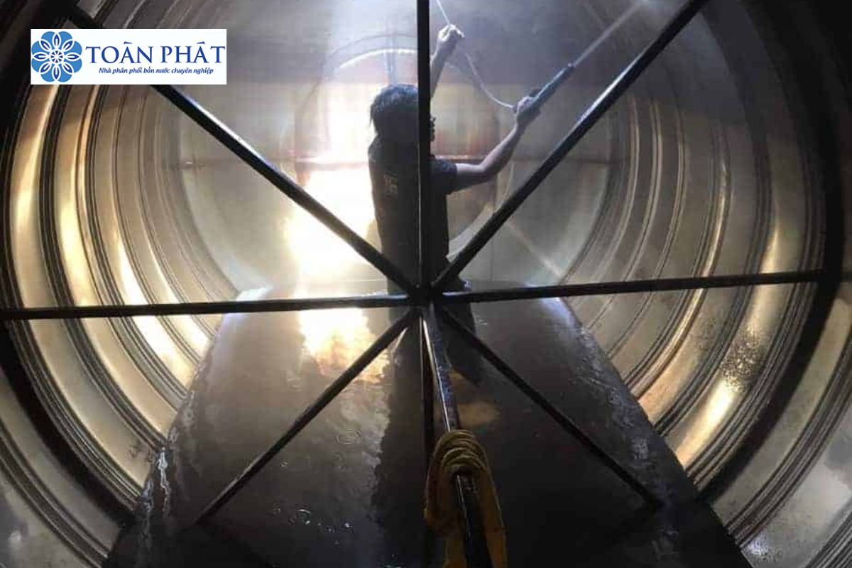 Đặc biệt, biofilm không thể loại bỏ chỉ bằng xả nước – cần chà rửa cơ học hoặc xịt áp lực cao để phá vỡ kết cấu dính bám. Việc làm sạch định kỳ giúp ngăn chặn ăn mòn điểm (pitting corrosion), duy trì độ bền bồn và tránh mất bảo hành sớm.