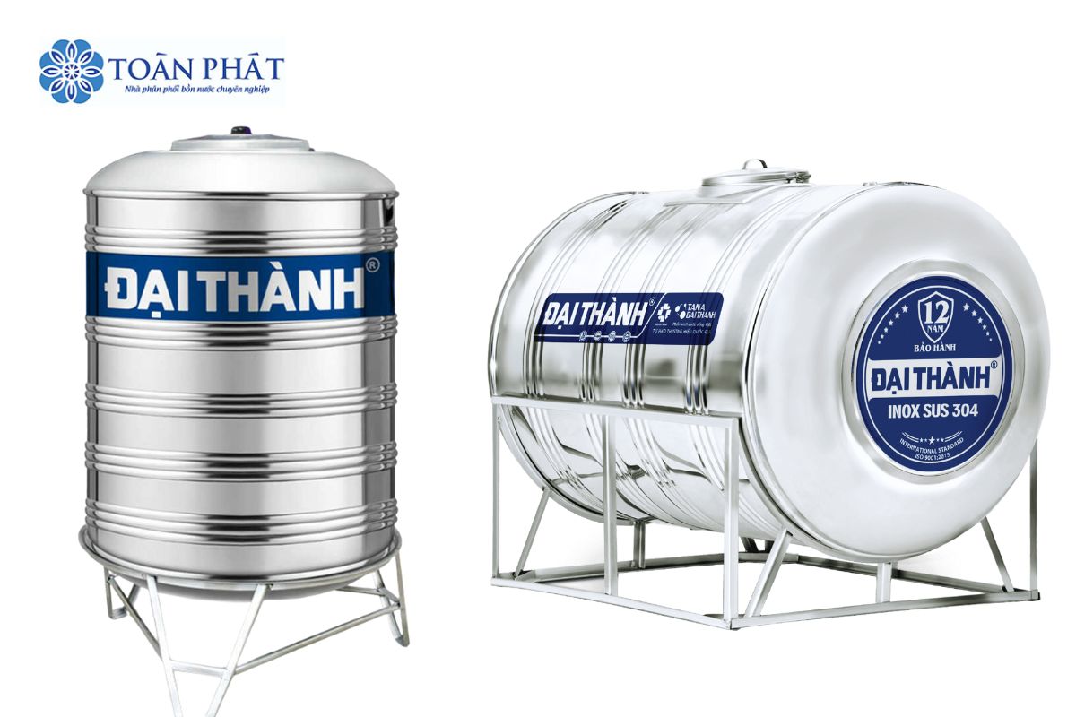 Mẹo nhận biết bồn thật: bồn inox 304 chính hãng Đại Thành luôn có dập nổi “SUS 304” trên thân bồn. Nếu không có, hãy cẩn trọng với hàng nhái hoặc công nghiệp.