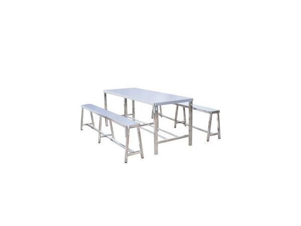 Bàn chữ nhật inox Hwata có thể kết hợp với nhiều kiểu dáng ghế khác nhau.