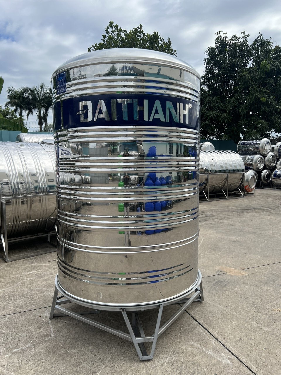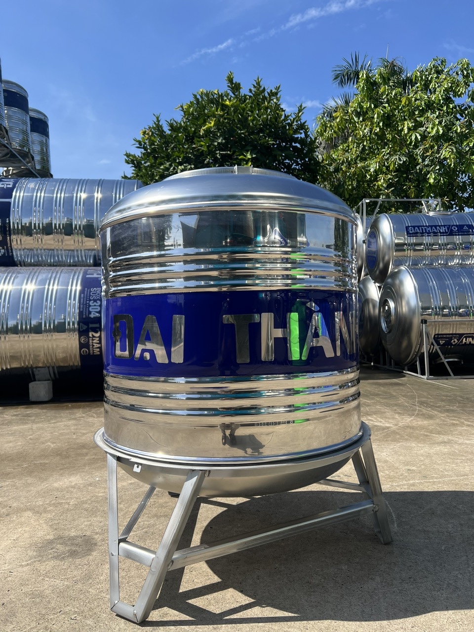 Thân bồn chính hãng Đại Thành được làm từ inox SUS 304 (hoặc SUS 316 vùng nước mặn), chống gỉ sét tốt. Chân bồn thường dùng SUS 201 – cứng hơn nhưng ít chống gỉ hơn nếu tiếp xúc hóa chất.