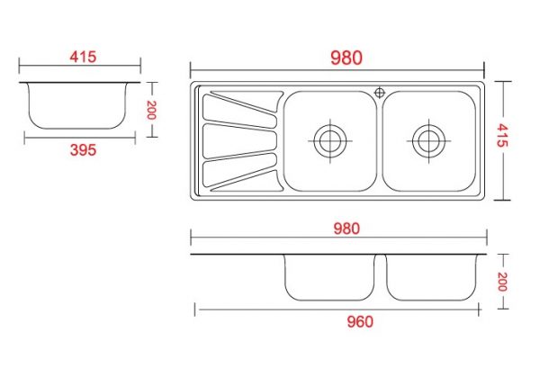 Bảng vẽ chi tiết chậu inox Sơn Hà S100S