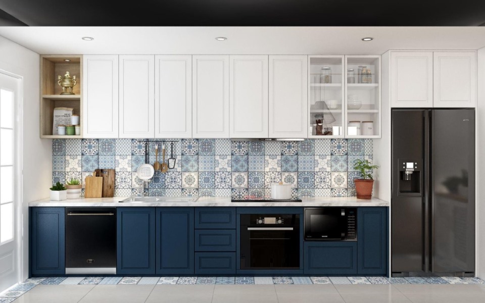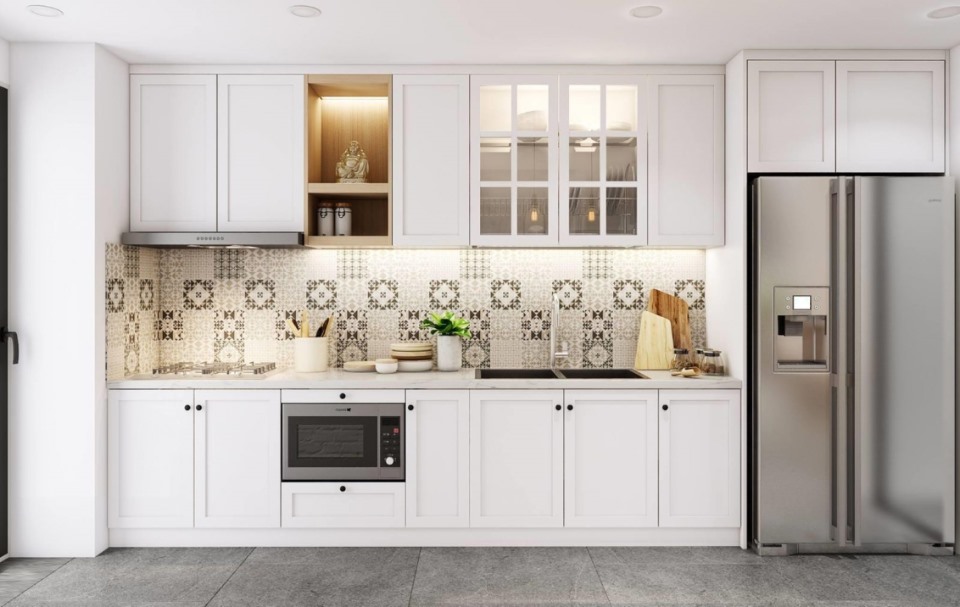 tủ bếp chữ I màu trắng giúp phòng bếp thông thoáng hơn​