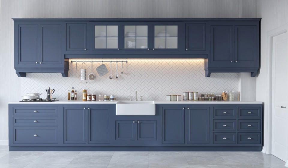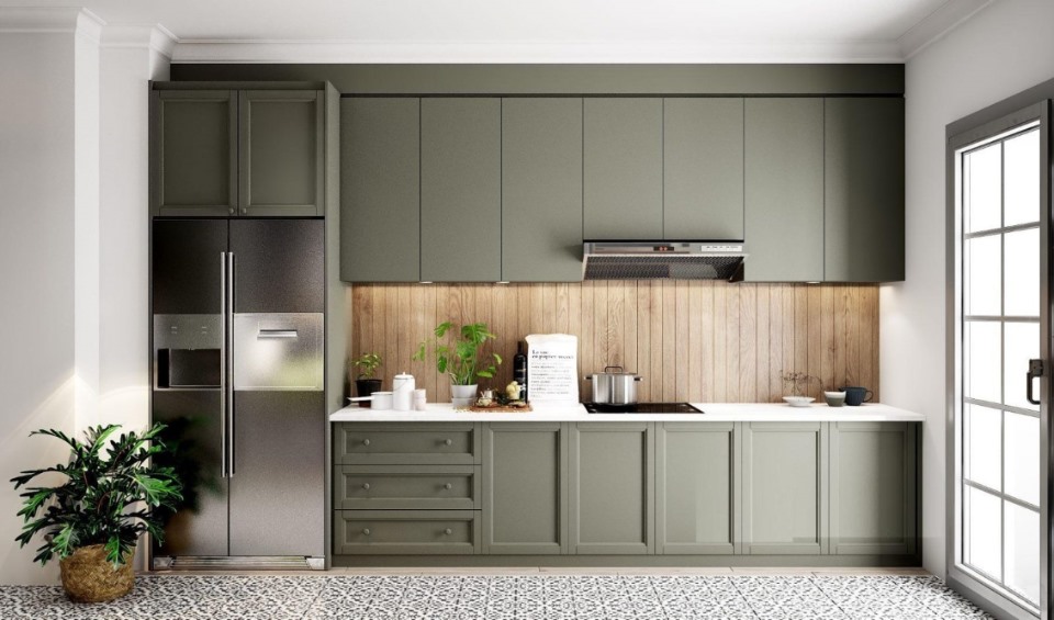 Tủ bếp chữ I sơn phong cách tân cổ điển​