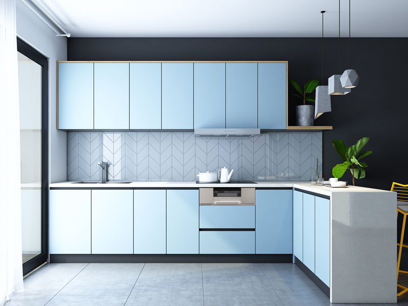 • Bề mặt tủ bếp gỗ công nghiệp thường được phủ một lớp sơn bóng có tác dụng chống ẩm mốc và bám bẩn, đồng thời hạn chế sự trầy xước mỗi khi va chạm với các vật cứng.