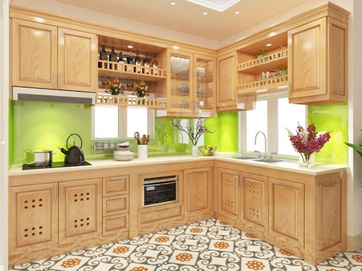 Tủ bếp gỗ tự nhiên cho không gian bếp ấm cúng